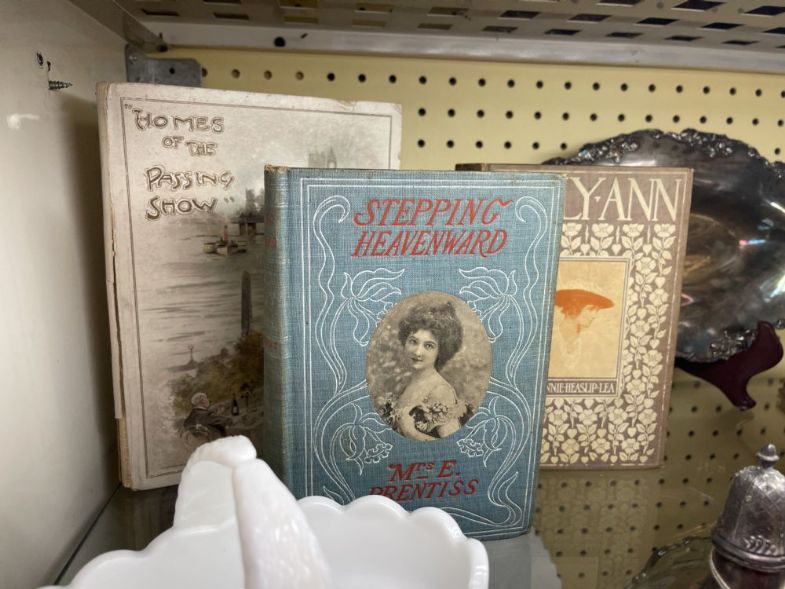 Showcase - Vintage books, milk glass, silver